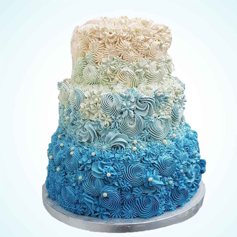 A stunning 3-tiered stacked vanilla wedding cake frosted in vanilla buttercream with your choice of filling and decorated with exquisite hand-crafted sugar flowers – contact the shop to let us know your flower scheme. Please note that tier 1 is the bottom tier of the wedding cake.